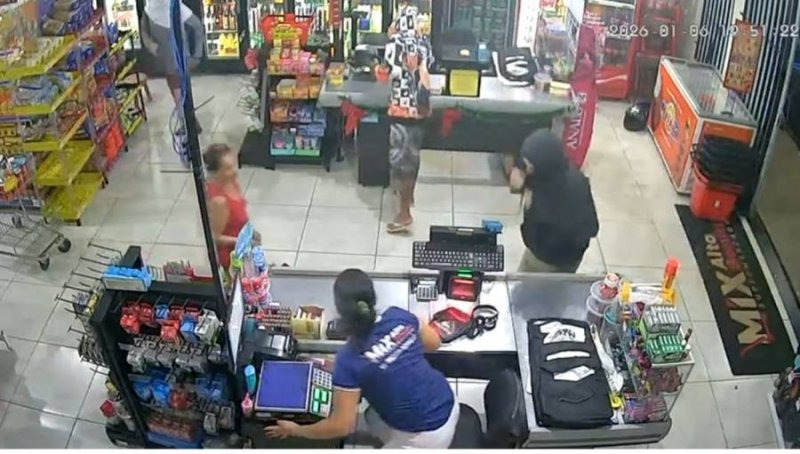 Crime foi registrado por câmera de segurança; cerca de R$ 1,9 mil em dinheiro e um celular foram levados